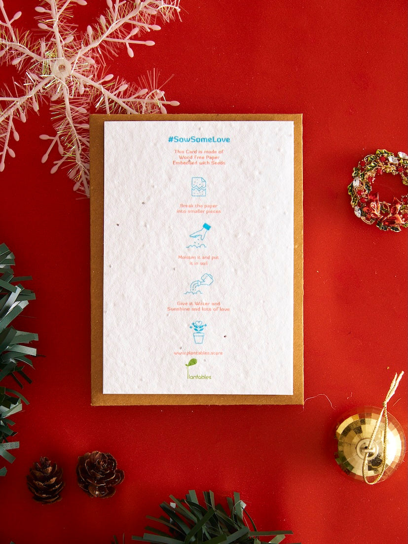 Cheers and hallelujah! For the year is done and dusted. A heartfelt season’s greetings card for your loved ones cuz ‘tis the season to #SowSomeLove! Our Plantable greetings are made from 100% upcycled cotton scrap paper with seeds embedded in them.